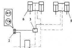 液壓系統(tǒng)改裝原理  1 電動多路換向閥;2 翻料油缸;3 啟閉油缸;4 節(jié)流閥;5 電磁換向閥;6 液控單向閥;7 壓力表;8 齒輪泵  翻料機(jī)構(gòu)改