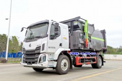 柳汽乘龍M3鉤臂垃圾車 采用乘龍M3豪華駕駛室,玉柴200 245馬力國六發(fā)動機(jī),法士特8檔,4500mm軸距,10 00R20鋼絲胎,手動液壓翻轉(zhuǎn)、MP