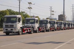 • 東風(fēng)天錦鉤式垃圾車11臺(tái)趕赴河南交付上戶