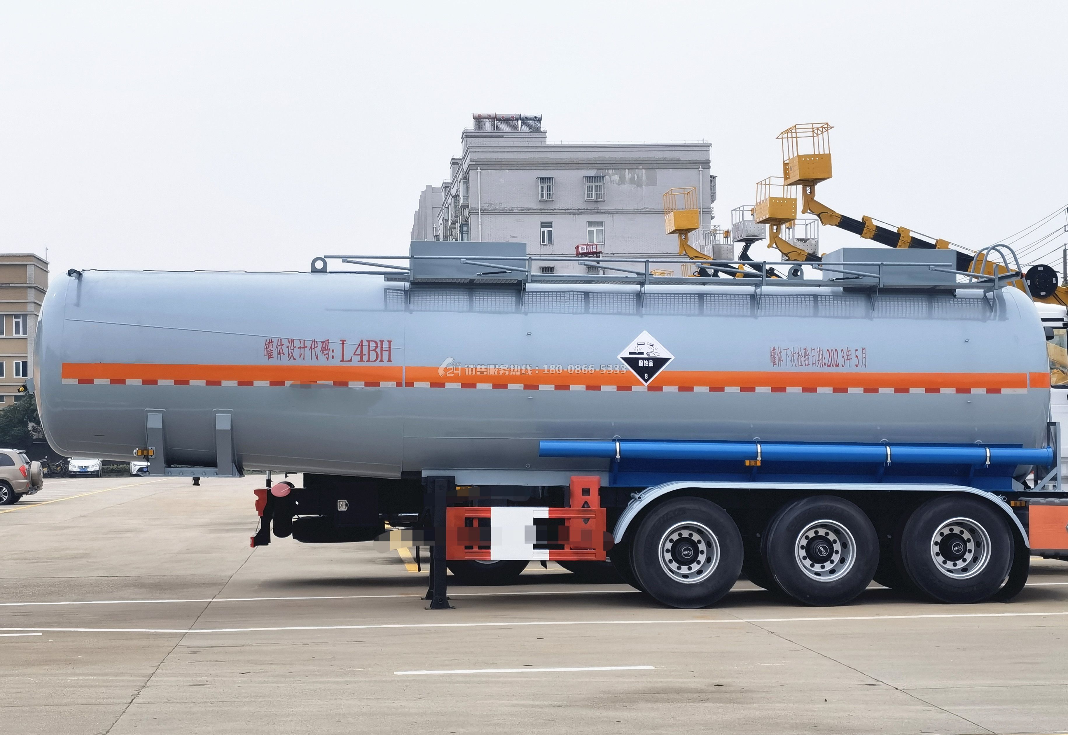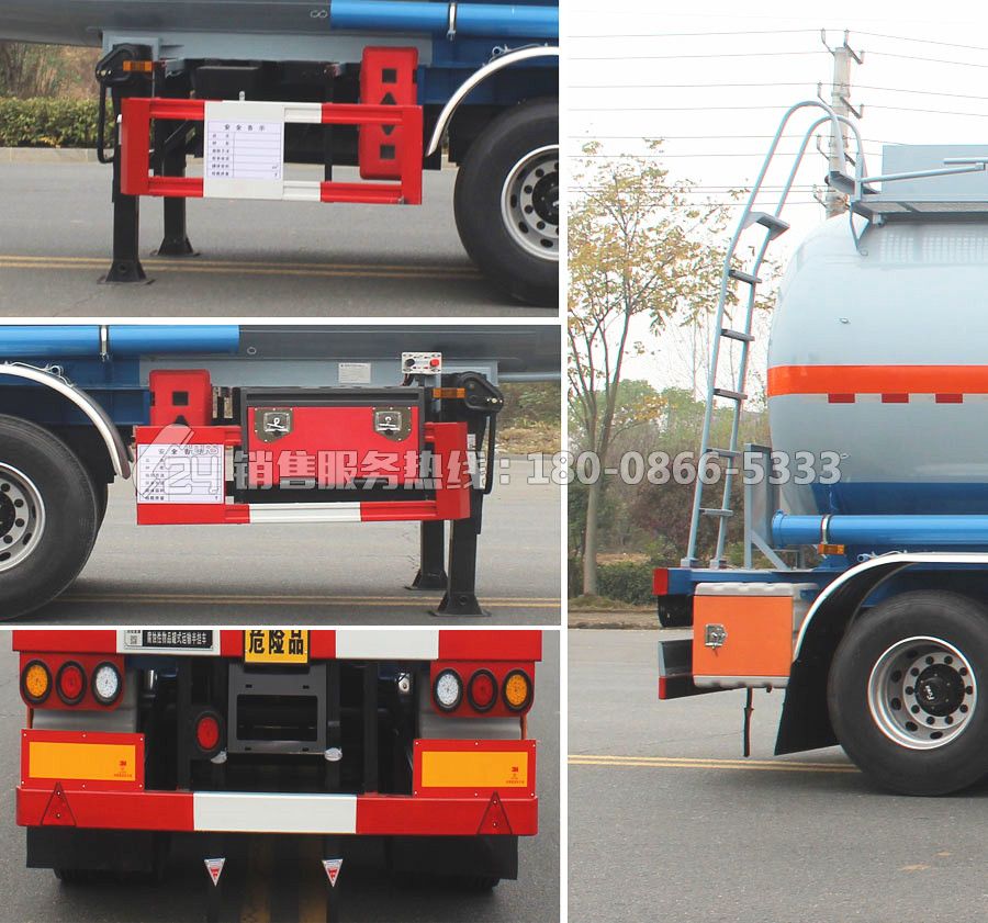 罐體采用國標(biāo)優(yōu)質(zhì)Q235碳鋼板制作罐體以及封頭,罐體截面為正圓罐,罐體尺寸嚴格按照公告尺寸制作29.0立方,內(nèi)襯聚乙烯平均12-16mm厚。罐頂單圍板,兩側(cè)帶碳鋼活動護欄.罐頂圍板內(nèi)2只全塑罐蓋,2個塑料呼吸閥,罐頂圍板內(nèi)做瀝青漆防腐,罐頂落水管引至后封頭出.罐體通倉,內(nèi)帶鋼襯塑雙隔板結(jié)構(gòu)防浪隔板.罐體底部一個DN100氣動四氟蝶閥總控帶緊急切斷開關(guān)后保險杠控制,通過襯塑三通管道,后尾部左右自流各一個DN80 PP球閥帶PP出口,出口帶塑料保護箱.罐體兩側(cè)為PVC炮筒,2根卸料管,2只8KG滅火器.
