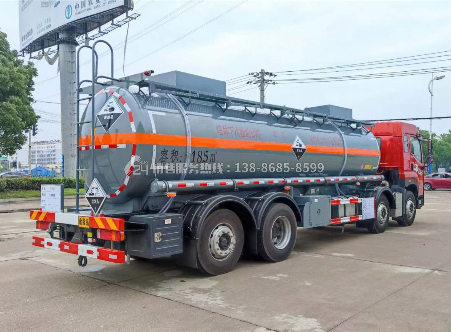 腐蝕性物品罐式運輸車 俗稱槽罐車又稱化工車、化工液體車、化工液體罐車、化工液體槽車。 罐體材質可根據(jù)需要選用碳鋼、碳鋼內襯塑、不銹鋼、塑料罐、鋁罐等。腐蝕性 物品罐式運輸車 廣泛運用于裝卸酸、堿、鹽等具有腐蝕性、危險性介質。