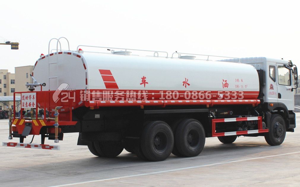 東風(fēng)T5灑水車(chē)配備國(guó)內(nèi)大功率灑水車(chē)專(zhuān)用水泵,可自吸自排,引水時(shí)間<15min,流量40m3/h,揚(yáng)程35米。東風(fēng)多利卡灑水車(chē)其它專(zhuān)用部分標(biāo)配為:前沖、后灑、側(cè)噴、后工作平臺(tái)、360度可調(diào)節(jié)綠化水炮,水泵垂直吸程≧7米,前沖灑水寬度≧14米,綠化水炮射程≧35米,自流閥、濾網(wǎng)、消防接口(可連接消防栓取水,可作應(yīng)急消防用)。罐前量管(觀察罐內(nèi)水位)、罐后爬梯、罐上罐口帶簡(jiǎn)易護(hù)欄、罐側(cè)雙炮筒、6米長(zhǎng)4寸鋼絲塑膠管兩根,罐體表面雙層油漆工藝,防銹、耐腐蝕,其余有廠家標(biāo)配??蛇x擇加裝加裝藥盤(pán)、氣動(dòng)控制閥、噴藥設(shè)備、罐內(nèi)防腐等。