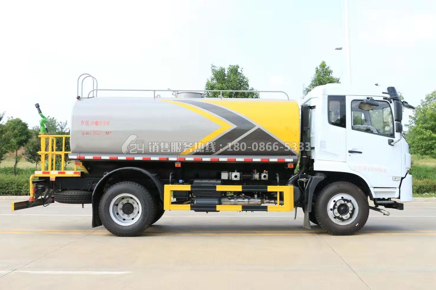 • 灑水車具有沖洗路面,澆灌園林,工地除塵,運(yùn)水、排水,應(yīng)急消防等功能。其標(biāo)配為前沖、后灑和側(cè)噴,采用自吸式專用水泵,泵可抽水排水,帶消防接頭、自流閥、罐體后帶工作平臺(tái),安裝綠化灑水炮,炮可旋轉(zhuǎn)可調(diào)節(jié)水量大小(噴射呈柱、霧、毛毛雨)。?可加裝30米到60米霧炮,加裝護(hù)欄清洗刷,除雪鏟,自動(dòng)電子水炮,打藥機(jī),保溫裝置等。