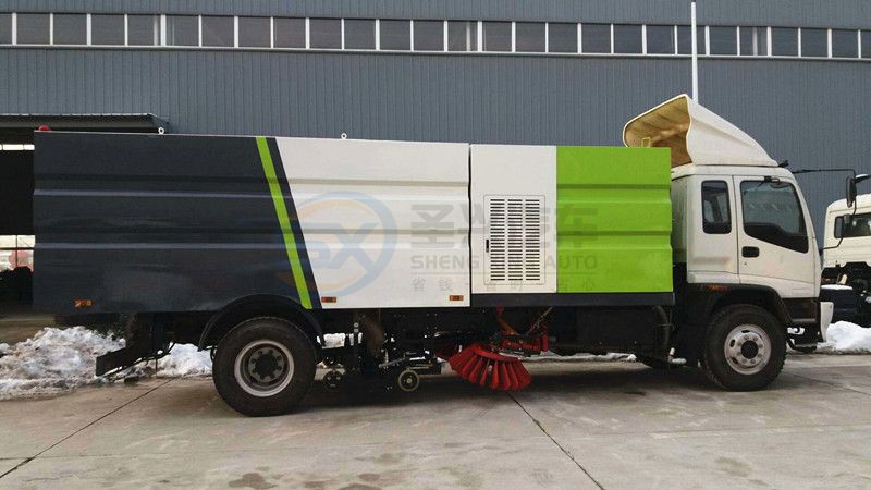 • 洗掃車結合了掃路車、高壓清洗車和灑水車的多重功能,是傳統(tǒng)掃路車的升級車型,對路面清掃的同時可實現(xiàn)對路面的高壓沖洗,清潔效果好,作業(yè)無揚塵,特別適用于城市道路、路沿、廣場的深度清掃保潔作業(yè)。標配低壓前沖和后噴霧,可像灑水車一樣對路面進行大面積沖洗和噴灑保濕;隨車配有洗車卷盤和高壓水槍,可像高壓清洗車一樣 便捷清理路邊小廣告,還市區(qū)一個潔凈美麗的面容。