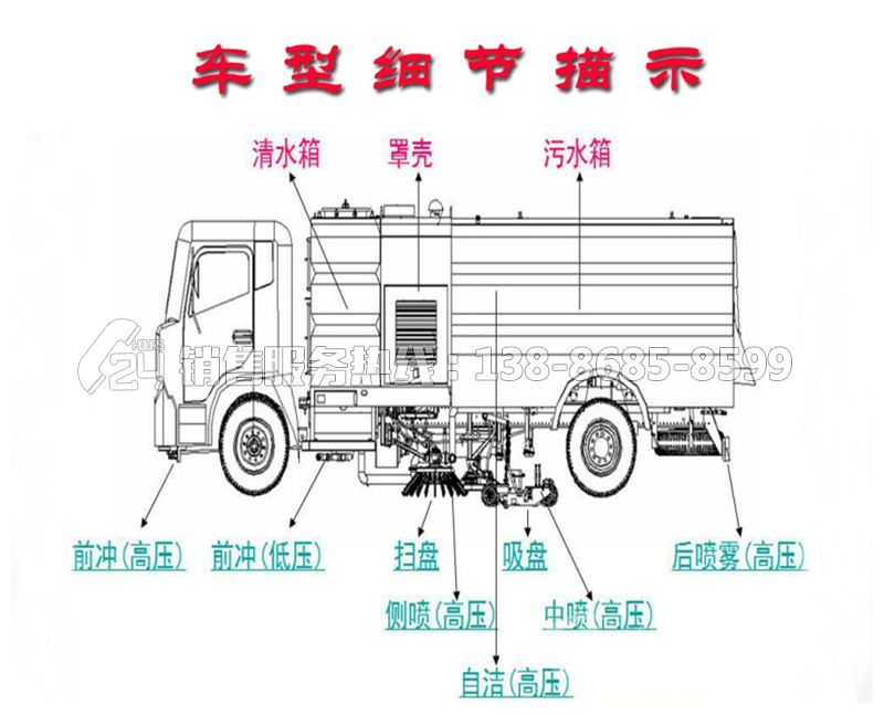 13、除了上面所說的配置,用戶還可根據(jù)自己的實際需求,選擇加裝前部、后灑、噴霧、自潔卷盤、輔助吸塵管、推雪鏟等配置。