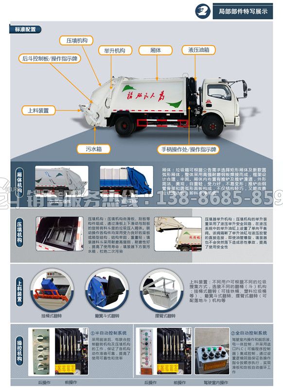 藍牌凱馬4方壓縮垃圾車專用配置: