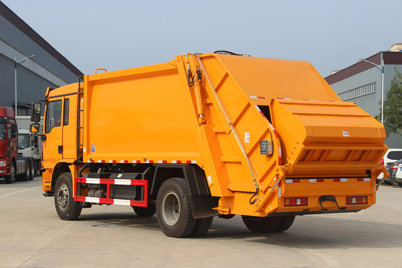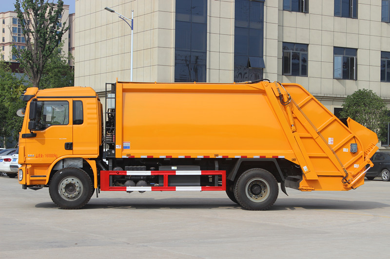 陜汽德龍壓縮垃圾車,采用陜西重卡L3000駕駛室,濰柴220馬力發(fā)動(dòng)機(jī),法士特9JS105E-C(帶法蘭取力器),Φ395離合,5T前橋,9.0后橋,264(8+4)車架,180L鐵油箱,10.00R20,機(jī)械全浮駕駛室懸置、手動(dòng)液壓翻轉(zhuǎn)、機(jī)械減振司機(jī)座椅、電動(dòng)玻璃升降、遙控中控鎖、空調(diào)、ABS.
