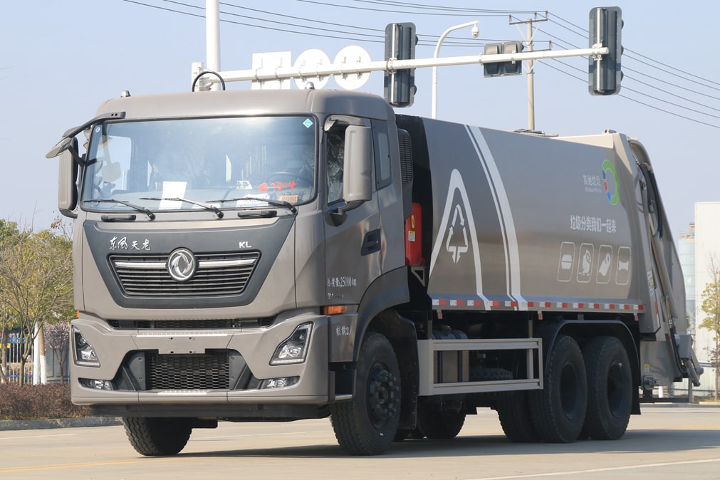 東風(fēng)天龍后雙橋壓縮式垃圾車,采用東風(fēng)后雙橋高端環(huán)衛(wèi)車系列底盤,平頭一排半豪華駕駛室,液壓翻轉(zhuǎn)設(shè)計(jì),檢修更方便。東風(fēng)雷諾350馬力高性能柴油發(fā)動(dòng)機(jī),正宗國六排放標(biāo)準(zhǔn),中德合資技術(shù),性能卓越,品質(zhì)有保證,配法士特9檔手動(dòng)變速箱,傳動(dòng)效率高,駕駛體驗(yàn)好。原廠方向助力、離合助力、ABS防抱死系統(tǒng),斷汽剎,配置分配合理,實(shí)用性強(qiáng)。