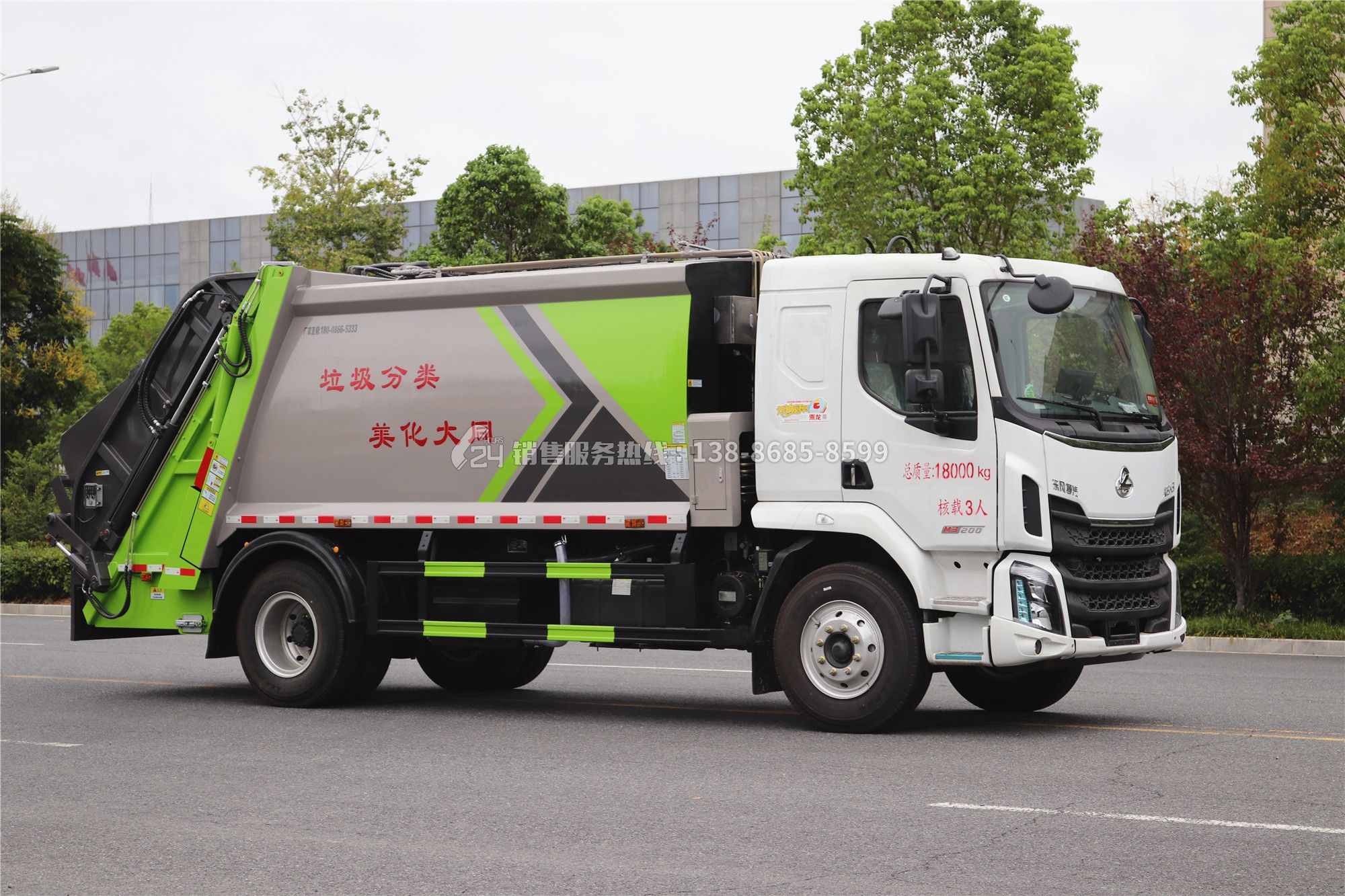 國六柳汽M3壓縮垃圾車,采用M3駕駛室,廣西玉柴YCS06 245-60國六245馬力發(fā)動(dòng)機(jī)(選裝200馬力發(fā)動(dòng)機(jī)),法士特8JS95E-C(帶法蘭取力器),Φ395離合,5T前橋,153后橋/5.143,板簧11/12+9,264(6+4)車架,160L鐵油箱,10.00R20,機(jī)械全浮駕駛室懸置、手動(dòng)液壓翻轉(zhuǎn)、機(jī)械減振司機(jī)座椅、電動(dòng)玻璃升降、遙控中控鎖、空調(diào)、ABS.
