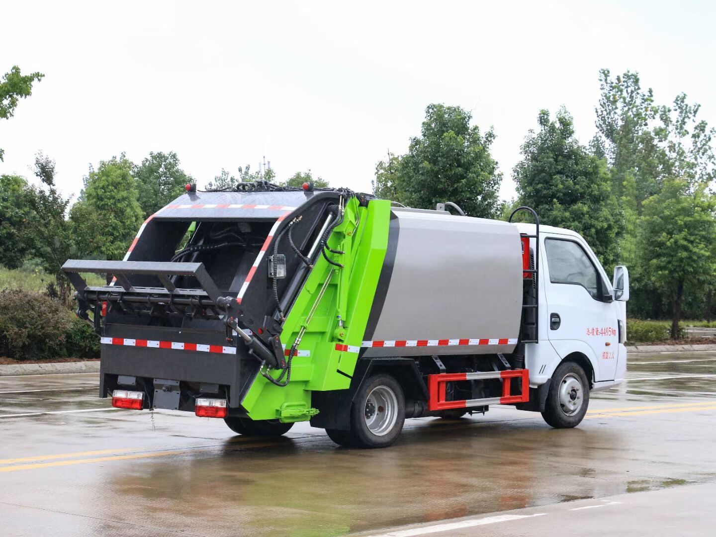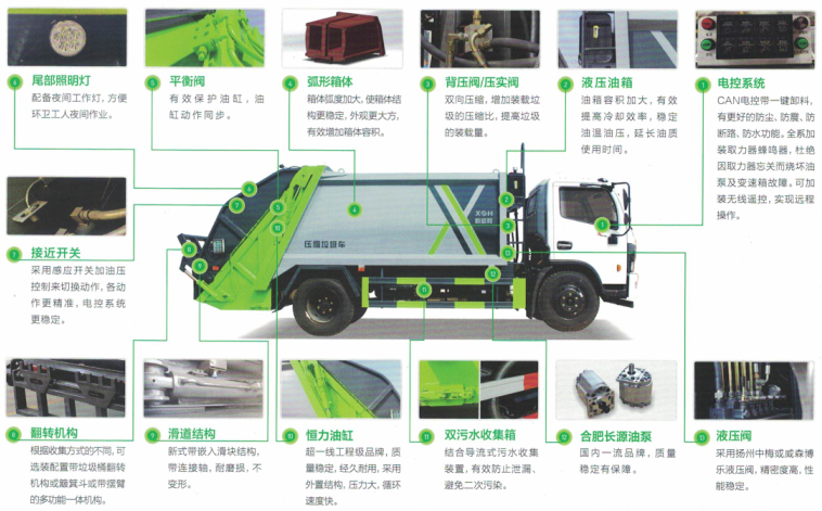 • 壓縮垃圾車:由密封式垃圾廂、液壓系統(tǒng)、操作系統(tǒng)組成。整車為全密封型,自行壓縮、自行傾倒、壓縮過程中的污水全部進入污水廂,較為徹底的解決了垃圾運輸過程中的二次污染的問題,避免了給人們帶來不便,關鍵部件采用進口部件,具有壓力大、密封性好、操作方便、安全等優(yōu)點??蛇x配后掛桶翻轉機構或垃圾斗翻轉機構。性能介紹:壓縮倍率:2-3倍 選裝配置:翻轉斗、掛桶架、PLC自控等。