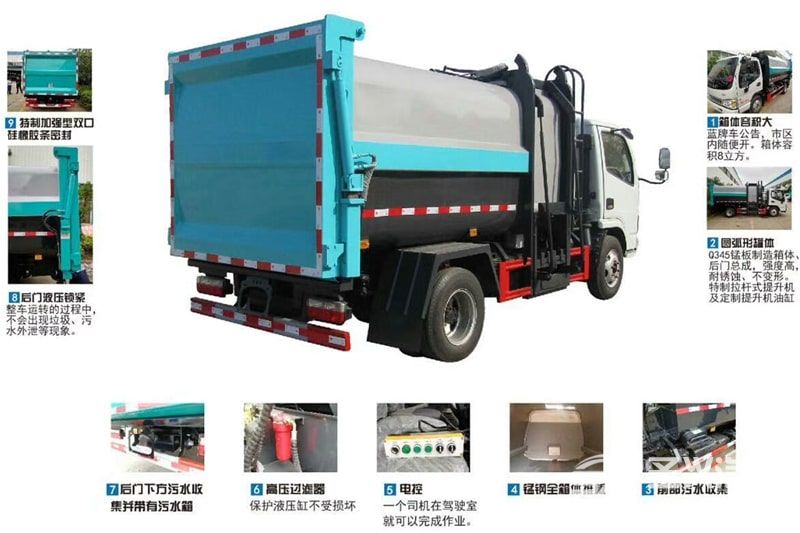藍牌7.5方東風(fēng)多利卡壓縮式掛桶垃圾車
