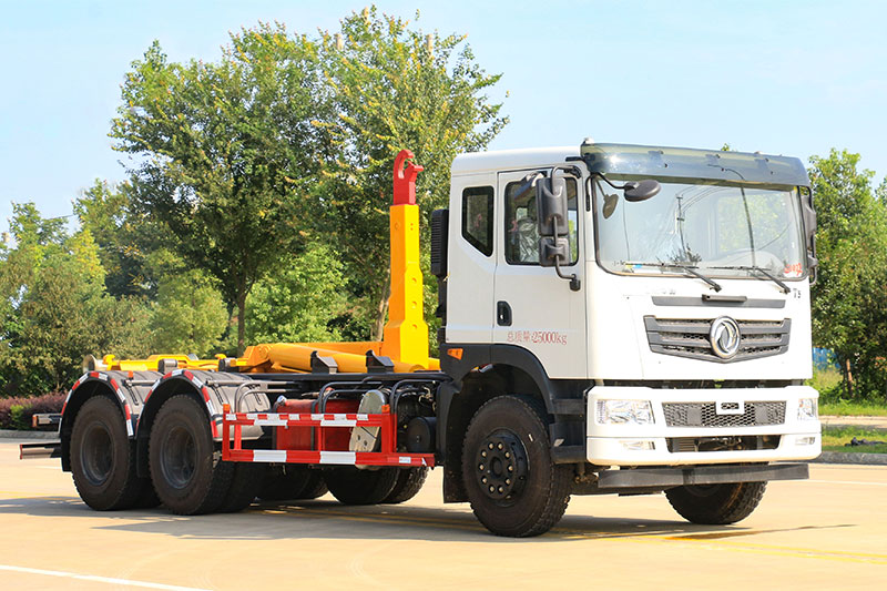 東風(fēng)華神T5后雙橋鉤臂式垃圾車,標(biāo)配可配合14-18方垃圾箱使用,也可配合同級(jí)別移動(dòng)壓縮式垃圾箱使用,勾臂采用高強(qiáng)度優(yōu)質(zhì)錳鋼,副車架采用16號(hào)低合金槽鋼、20號(hào)方管與8mm、5mm、4mm、16Mn鋼板焊接而成,翻轉(zhuǎn)架與活動(dòng)勾臂垃圾車動(dòng)作設(shè)計(jì)合理可靠,實(shí)現(xiàn)拉箱、鎖緊、放箱和自卸操作簡(jiǎn)單方便,控制方式為駕駛室智能控制,也可根據(jù)用戶需要選裝駕駛室外傳統(tǒng)操作桿進(jìn)行控制。