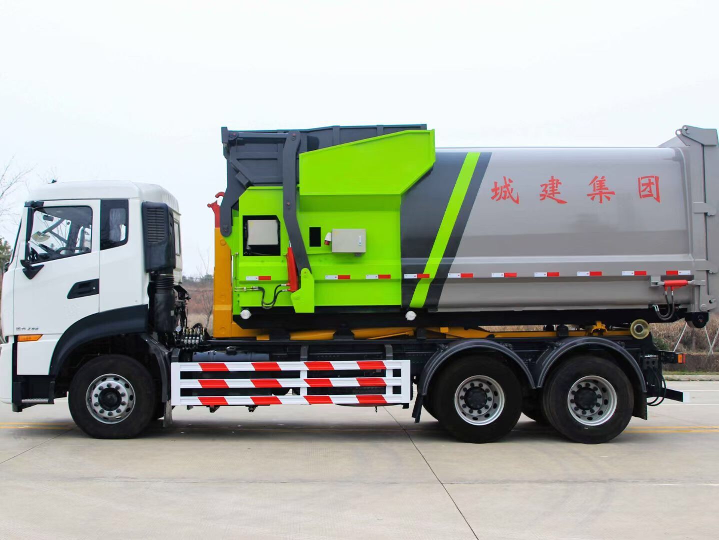 • 勾臂式垃圾車又稱為車廂可卸式垃圾車。主要適用于市政環(huán)衛(wèi)、物業(yè)管理、大型廠、工礦等各種場所收集、運載各種垃圾。 勾臂垃圾車特點:鉤臂垃圾車采用高新設計可擺得鉤臂,一車可帶多個大廂,裝卸方便,實現(xiàn)車廂的二次吊裝并使機構(gòu)最為省力,具有結(jié)構(gòu)簡單,操作穩(wěn)定方便,高效率裝卸,節(jié)省人力等優(yōu)點。鉤臂垃圾車可根基用戶要求配備若干個垃圾轉(zhuǎn)運箱。轉(zhuǎn)運箱可作為一個簡易、美觀、環(huán)保的垃圾轉(zhuǎn)運站,最大限度提高了車輛的使用效率。