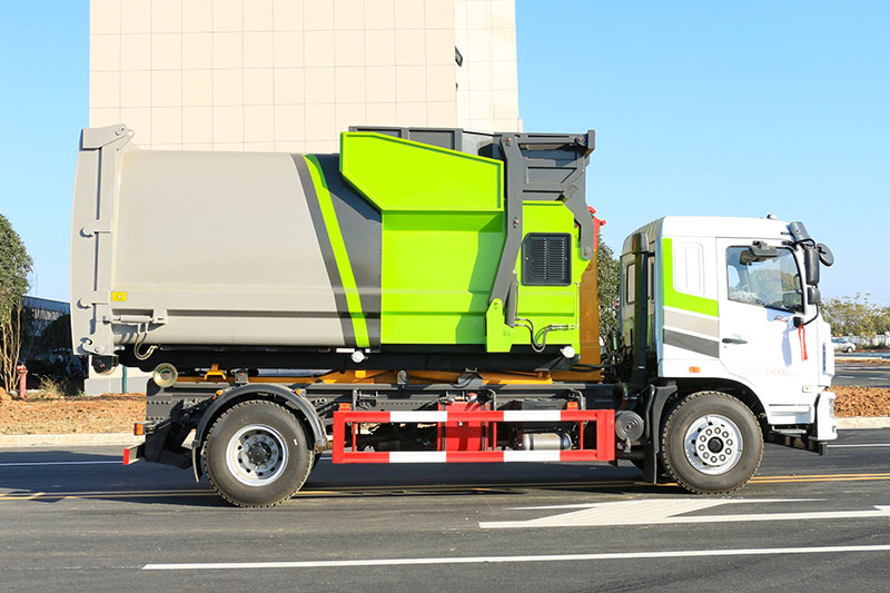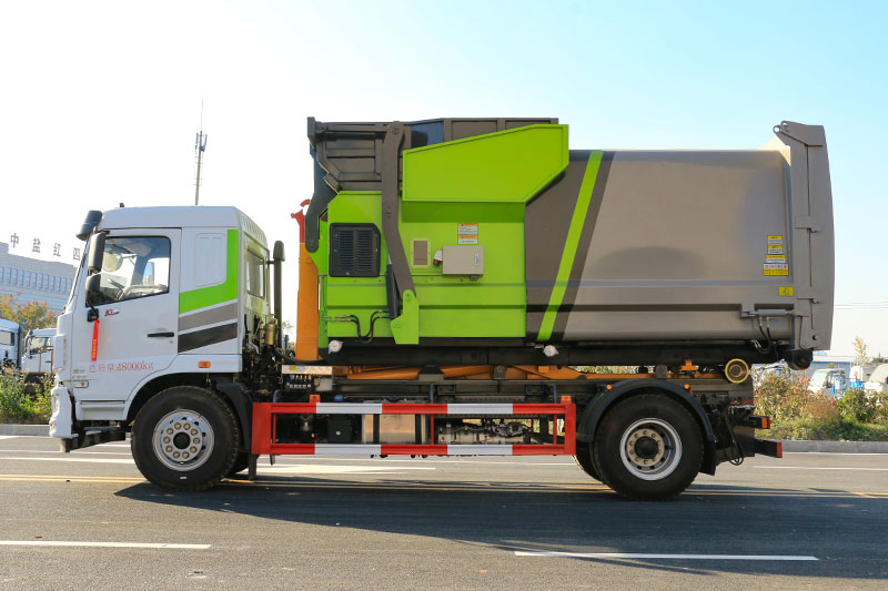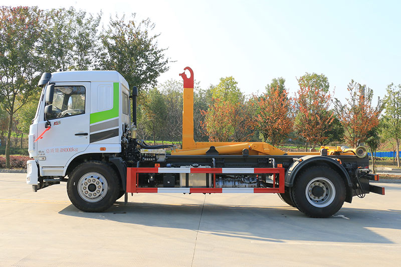 東風(fēng)華神KL5鉤臂式垃圾車,標配可配合12-14方垃圾箱使用,也可配合同級別移動壓縮式垃圾箱使用,勾臂采用高強度優(yōu)質(zhì)錳鋼,副車架采用16號低合金槽鋼、20號方管與8mm、5mm、4mm、16Mn鋼板焊接而成,翻轉(zhuǎn)架與活動勾臂垃圾車動作設(shè)計合理可靠,實現(xiàn)拉箱、鎖緊、放箱和自卸操作簡單方便,控制方式為駕駛室智能控制,也可根據(jù)用戶需要選裝駕駛室外傳統(tǒng)操作桿進行控制。