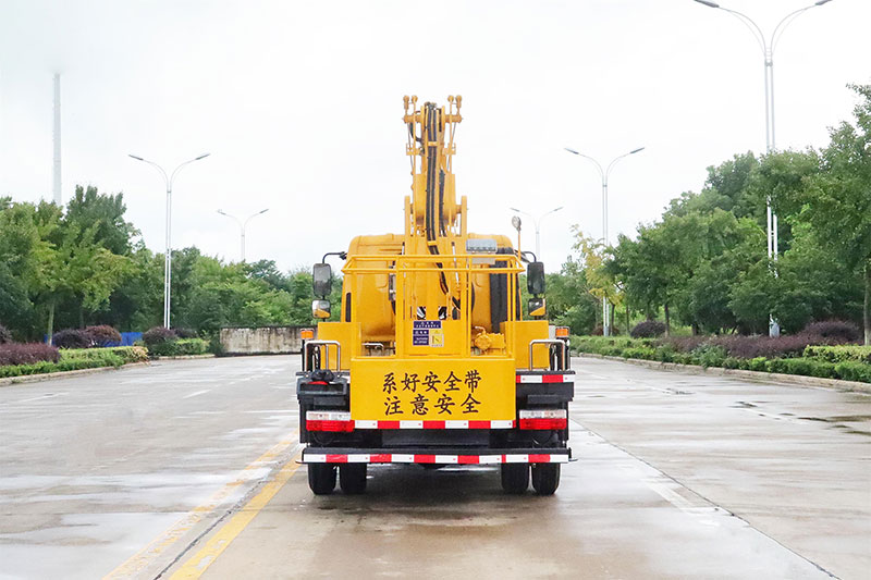 四個(gè)液壓伸展支腿,標(biāo)配0.8噸吊鉤,折疊式三節(jié)臂,360度全回轉(zhuǎn)旋平臺,操作平臺,工作斗均可操作。上裝部分采用國產(chǎn)換向閥及液壓油缸,換向平穩(wěn),操作靈活方便,液壓系統(tǒng)實(shí)現(xiàn)上下車互鎖,過載保護(hù),油缸安全自鎖,轉(zhuǎn)臺、工作斗雙工位操作,臂架結(jié)構(gòu)緊湊,機(jī)動(dòng)性好,作業(yè)范圍大,支腿與工作臂互鎖,安全可靠,防止誤操作,H型支腿,跨距大,穩(wěn)定性好,支腿即可獨(dú)立伸縮、又可聯(lián)動(dòng),裝有支腿報(bào)閃燈,用于作業(yè)時(shí)支腿示廊、發(fā)出光報(bào)警信號,工作斗自動(dòng)調(diào)平,外置拉桿強(qiáng)制平衡。