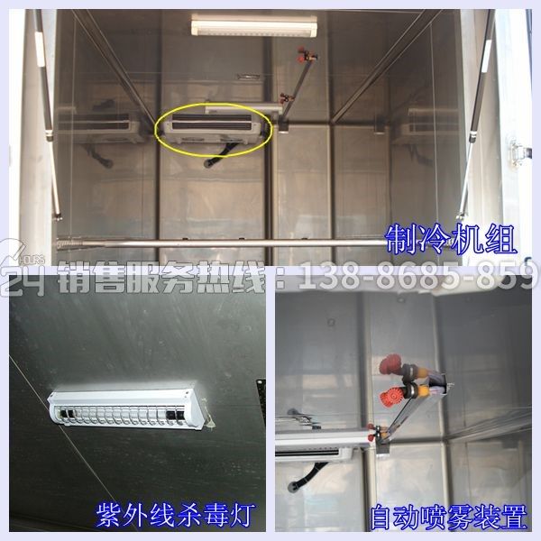 廂體結(jié)構(gòu): 廂體內(nèi)尺寸:6850×2400×2200;外玻璃鋼內(nèi)不銹鋼,紫外線、噴霧消毒,雙開后,固定臥環(huán),箱體密封無泄露。 冷藏設備:國產(chǎn)冷藏機組: 上海松寒、冰狗、漢雪、K牌等國內(nèi)知名品牌 0~-5°C/-10°~-15°C;