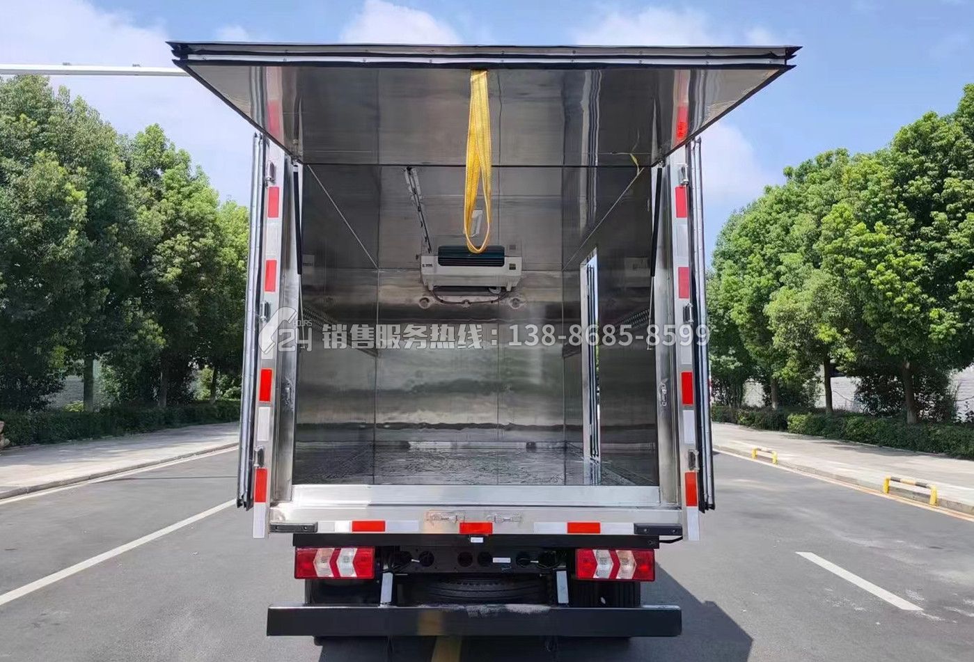 ①根據(jù)醫(yī)療垃圾的特點(diǎn)設(shè)計(jì),采用密閉性運(yùn)輸,后門為雙層密閉結(jié)構(gòu),并采用迷宮式密封條,使車廂完全封閉,以達(dá)到防止醫(yī)療垃圾病菌毒氣的擴(kuò)散作用。