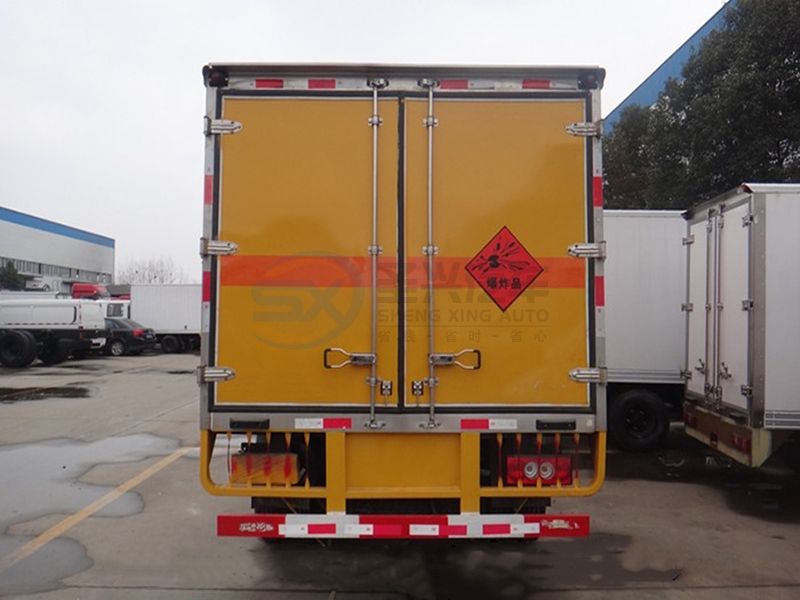 1、廂體部分:廂體為雙層金屬骨架結(jié)構(gòu),外部為冷扎鋼板,內(nèi)壁采用鋁合金板蒙面,夾層為隔熱阻燃材料填充。設(shè)置對(duì)開門,側(cè)壁設(shè)有防雨功能自然通風(fēng)窗口,以使廂內(nèi)外空氣流動(dòng),廂體內(nèi)部做防靜電處理,廂體底部與廂內(nèi)前部鋪有阻燃導(dǎo)靜電膠板,并與底盤等電位連接,通過車輛后端的導(dǎo)靜電裝置與大地相連,可防止靜電火花的產(chǎn)生和車輛靜電及時(shí)釋放,提高易燃?xì)怏w廂式運(yùn)輸車的安全性。廂體內(nèi)部前面和側(cè)面裝有固定拉環(huán),與捆綁帶使用捆綁貨物以避免移動(dòng),保證安全。