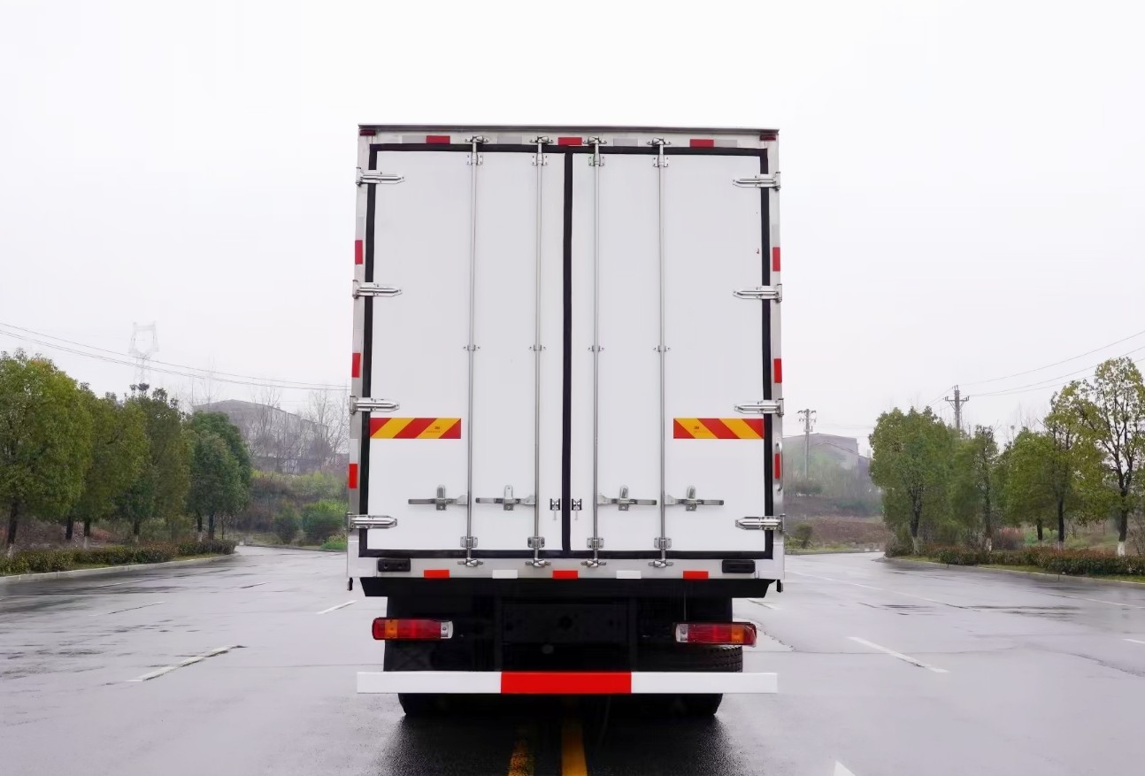 (2)廂板材質(zhì):內(nèi)外壁板選用國(guó)內(nèi)2.2mm玻璃鋼(不吸光、隔熱性好、硬度強(qiáng)、抗氧化);中間保溫層為高壓發(fā)泡聚氨酯板,廂體厚度8CM。地板采用鋁花紋板,門邊條采用迷宮式橡膠密封條。