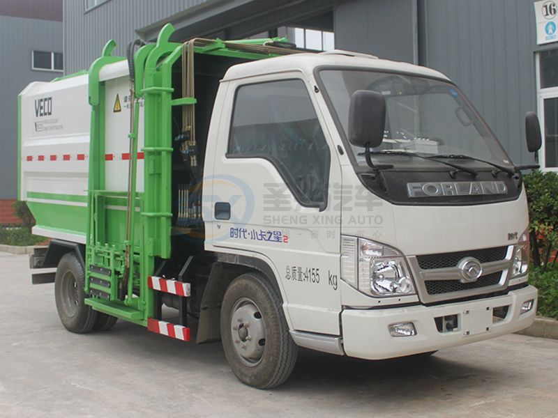 2、輕便靈活。福田3方掛桶式垃圾車,整車尺寸:4360mm*1760mm*2150mm,結(jié)構(gòu)緊湊小巧,駕駛輕松,適合各種路面狹窄的環(huán)境,如小區(qū)、小街小巷等,應(yīng)用范圍廣。