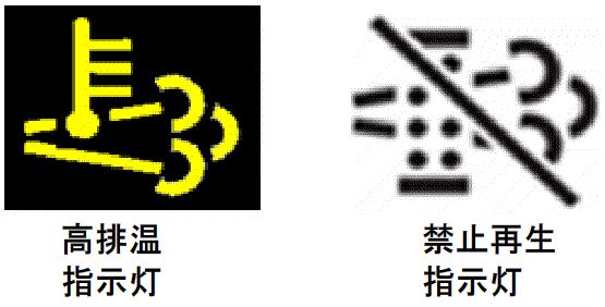 該燈點亮?xí)r,表示DPF需要駐車再生,說明行車中主動再生已經(jīng)無法有效清除DPF沉積顆粒物。