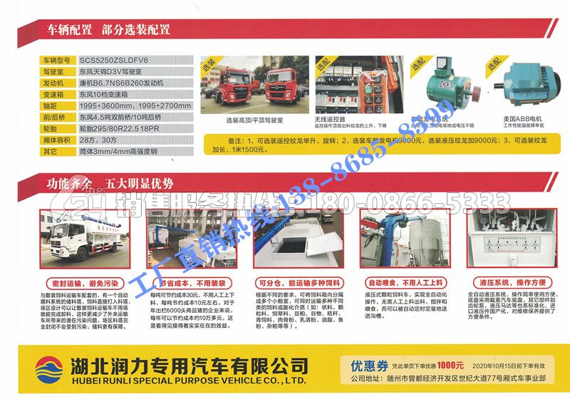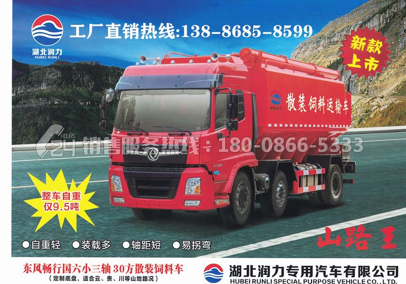 散裝飼料運輸車主要用于從飼料廠向畜牧場養(yǎng)禽場及飼料加工用戶運輸散裝飼料成品或飼料生產(chǎn)原糧,同時它也可用來運輸某些無腐蝕性粉粒狀原料,如制藥廠粉料和糧庫周轉(zhuǎn)。散裝飼料車的飼料罐架設(shè)在卡車的底盤上,罐頂開有進料口 頂部的一根螺旋輸送卸料管(俗稱卸料絞龍)則可自由回轉(zhuǎn)和抬升,抬升的仰角可達60度。運輸時,頂部的螺旋管平臥在罐頂;卸料時則抬起,使管端的出料口與畜禽飼養(yǎng)場貯料罐頂部的進料門相接,駕駛室內(nèi)裝有操縱裝置(操縱裝置也可裝置在罐體尾部),卸料時通過車底的動力輸出軸和減速器來驅(qū)動螺旋,以完成卸料。