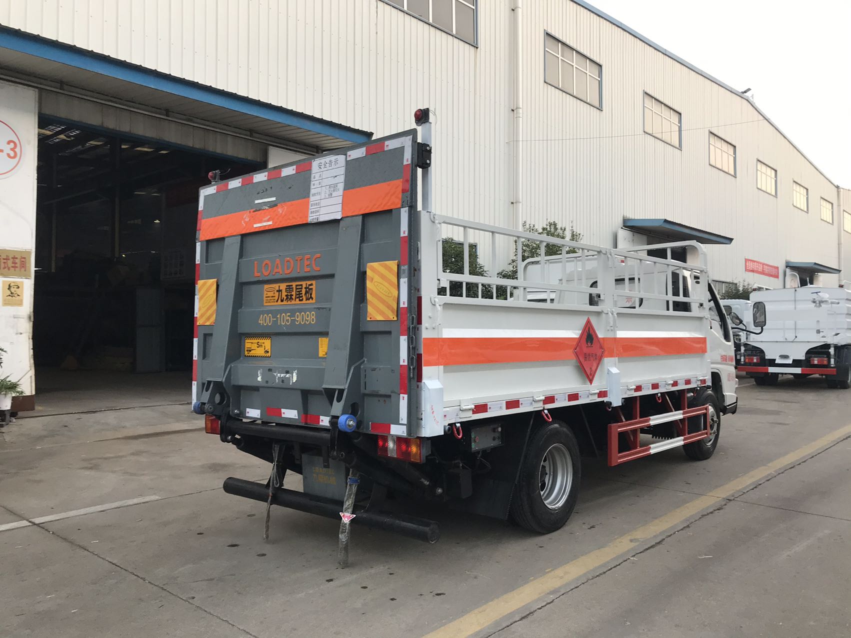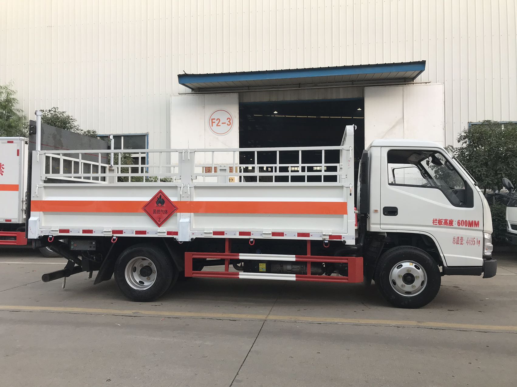 嚴(yán)格按照公告尺寸制作,底板采用2個(gè)厚板材,底板上鋪靜電膠皮,帶高欄,配備滅火器,三角頂燈,靜電拖帶等,嚴(yán)格按照國(guó)家危險(xiǎn)品法規(guī)進(jìn)行“易燃?xì)怏w”標(biāo)識(shí)粘貼等。