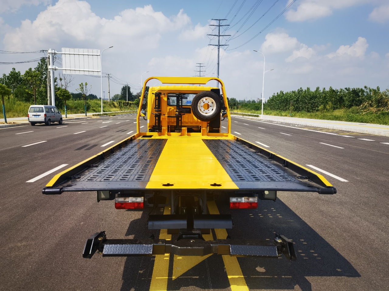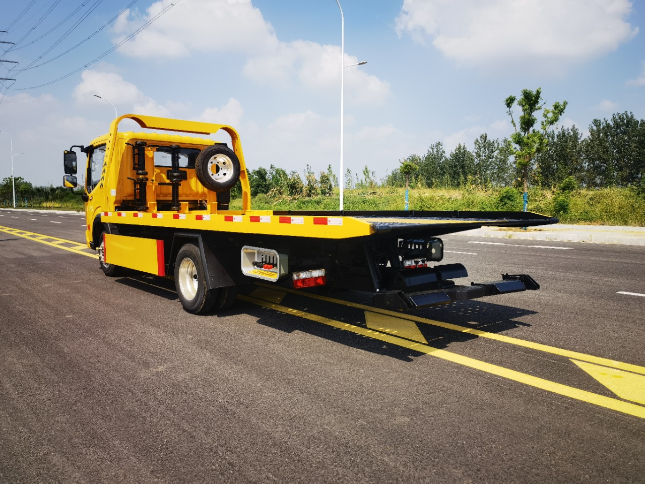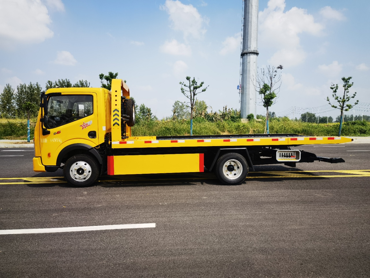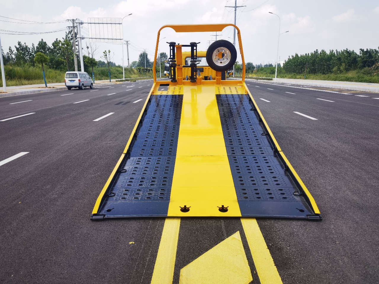 ★上裝配置: 采用高強(qiáng)鋼沖孔板,雙側(cè)操作裝置 ,1個(gè)4噸液壓絞盤(25米鋼絲繩),1個(gè)工具箱,擋胎2個(gè),4根綁帶。板長:5.3米,寬:2.3米(上裝可承載2.5噸)可加裝后托臂總成一套,七字叉一對,抱胎桶一對。