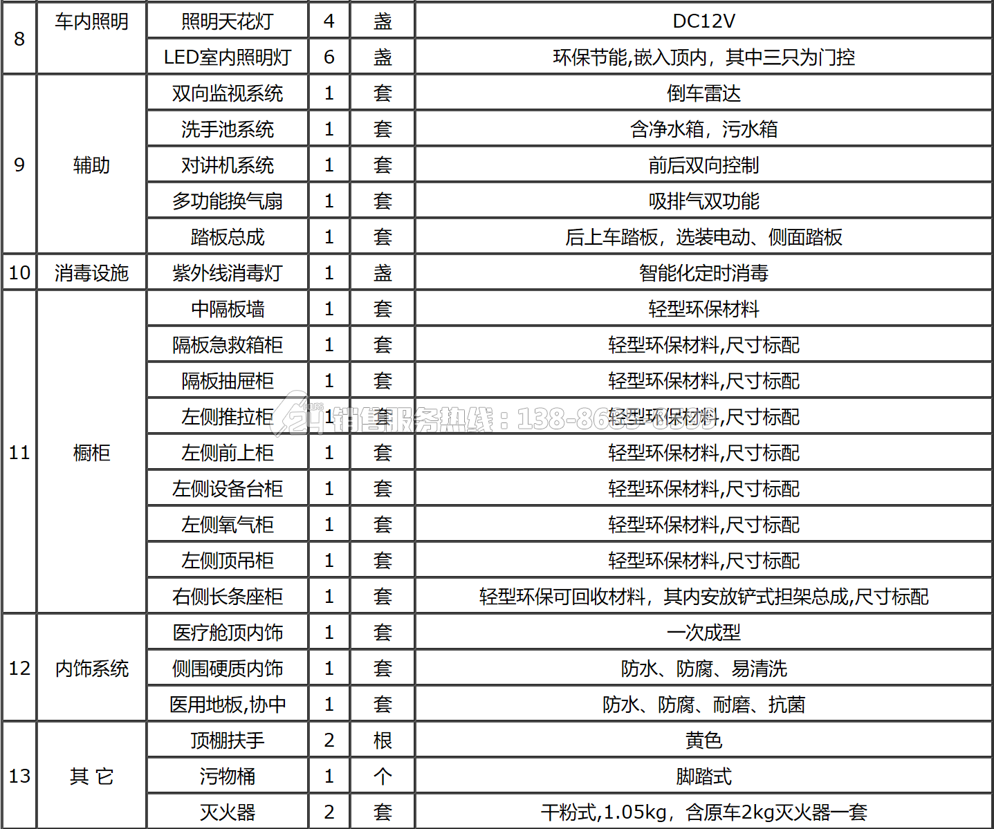 江鈴福特V348救護(hù)車長(zhǎng)軸高頂監(jiān)護(hù)型選裝配置(價(jià)格另計(jì))