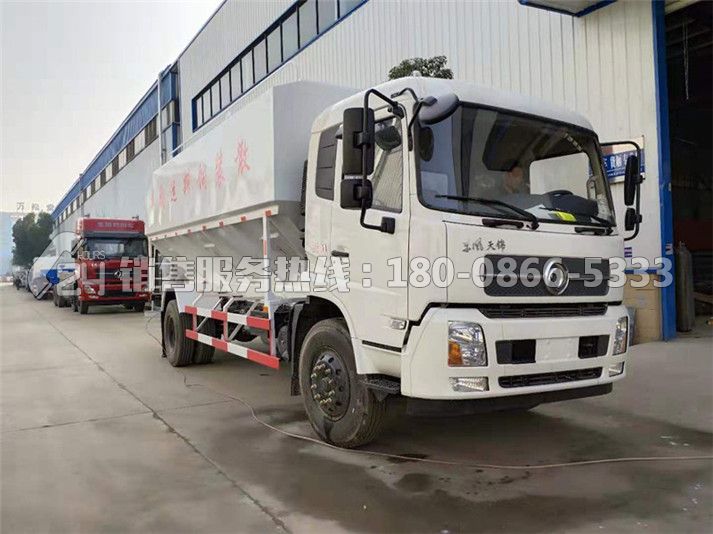 12-15噸的飼料車:是東風(fēng)天錦的兩軸車,罐體長(zhǎng)度約為6.8米。整車10米左右長(zhǎng)
