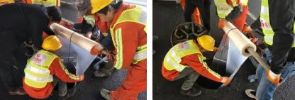 5、端頭切除:固化后切除修復(fù)后管道兩頭多余的軟管部分,對切除后兩端的毛邊進行修整處理。
