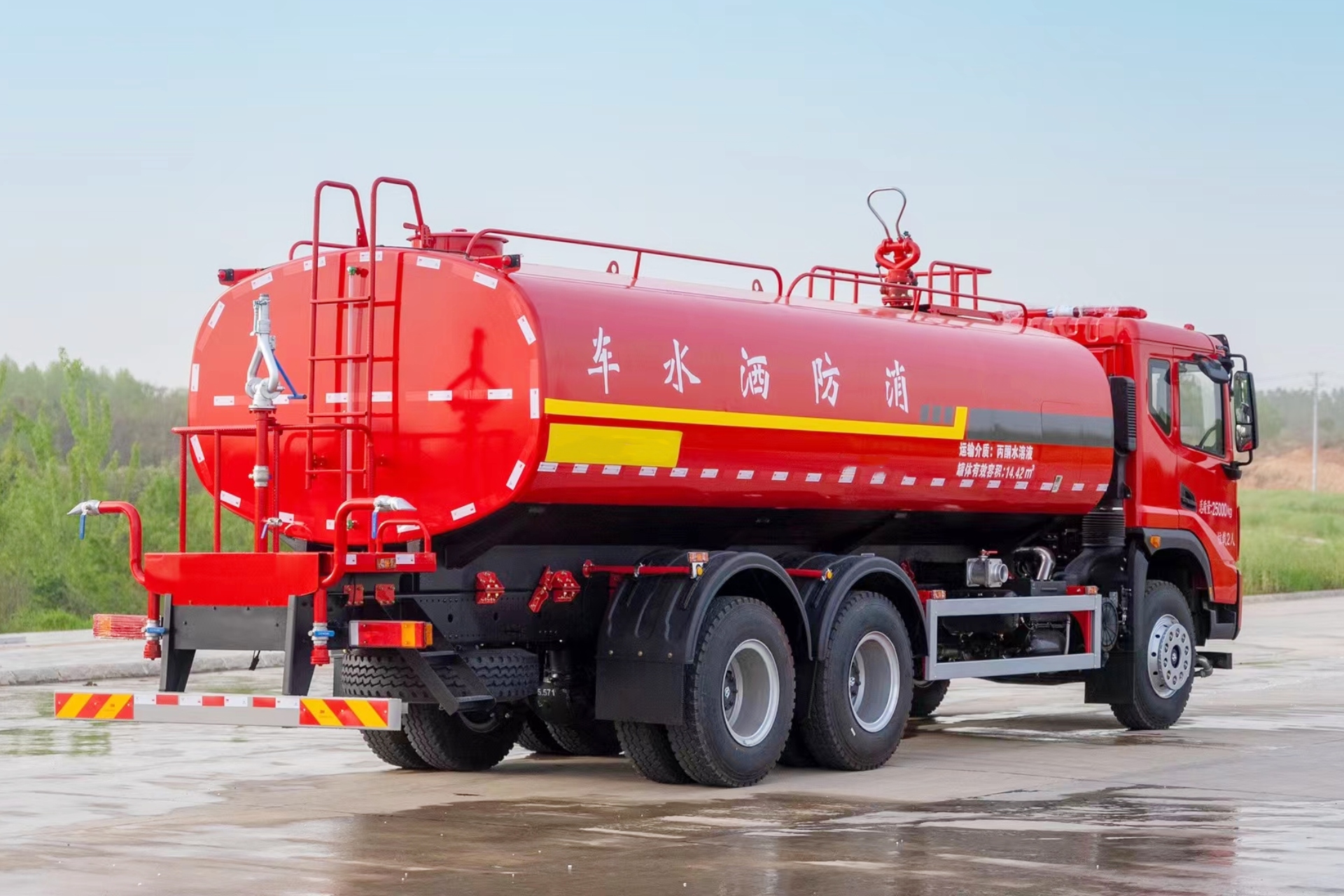 罐體采用優(yōu)質碳鋼板材制作,罐體有效容積15-19立方米,罐體自動焊接,自動圈板,封頭自動旋邊,筒體與封頭對接自動焊,罐體內置防浪板(包邊),帶億豐泵,前沖后灑側噴,后工作平臺高炮,帶一個外絲消防自流口,裝有氣控總閥,駕駛室全自動操作。