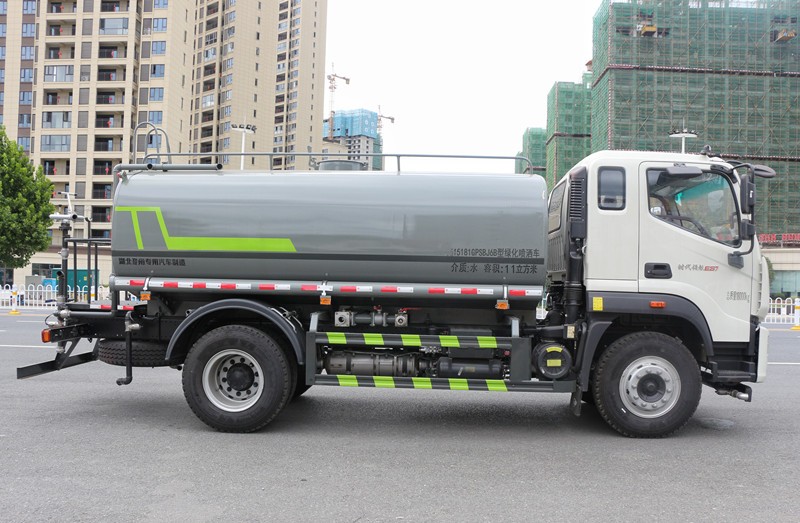 福田領(lǐng)航國(guó)六15方灑水車配備國(guó)內(nèi)大功率灑水車專用水泵,可自吸自排,引水時(shí)間<15min,流量40m3/h,揚(yáng)程35米。福田灑水車其它專用部分標(biāo)配為:前沖、后灑、側(cè)噴、后工作平臺(tái)、360度可調(diào)節(jié)綠化水炮,水泵垂直吸程≧8米,前沖灑水寬度≧18米,綠化水炮射程≧35米,自流閥、濾網(wǎng)、消防接口(可連接消防栓取水,可作應(yīng)急消防用)。罐前量管(觀察罐內(nèi)水位)、罐后爬梯、罐上罐口帶簡(jiǎn)易護(hù)欄、罐側(cè)雙炮筒、4米長(zhǎng)4寸鋼絲塑膠管兩根,罐體表面雙層油漆工藝,防銹、耐腐蝕,其余有廠家標(biāo)配??蛇x擇加裝加裝藥盤、氣動(dòng)控制閥、噴藥設(shè)備、罐內(nèi)防腐等。