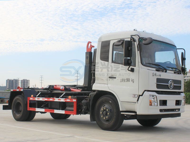 (圖為東風(fēng)天錦勾臂垃圾車--專業(yè)勾臂垃圾車價格致電 158 9762 6104)