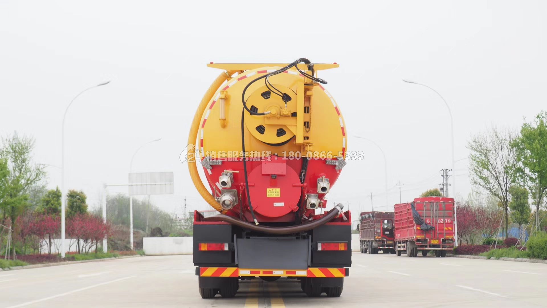 高壓清洗系統(tǒng)說(shuō)明:高壓清洗系統(tǒng)采用德國(guó)進(jìn)口高壓泵(22MPA 215L/min),配備60米(Φ19)耐高壓水管,連接10個(gè)國(guó)產(chǎn)高壓清洗沖頭或者2個(gè)進(jìn)口噴頭。 標(biāo)準(zhǔn)配置器材:400馬力副發(fā)動(dòng)機(jī),夾心取力器,液壓舉升油缸2只,后鎖緊小油缸2只,大流量高壓泵及水循環(huán)泵1臺(tái),帶鋼絲橡膠吸糞管1條,油氣分離器1個(gè),水氣分離器1個(gè),罐體內(nèi)部帶報(bào)警系統(tǒng)1套,視污窗1個(gè),其余標(biāo)配。