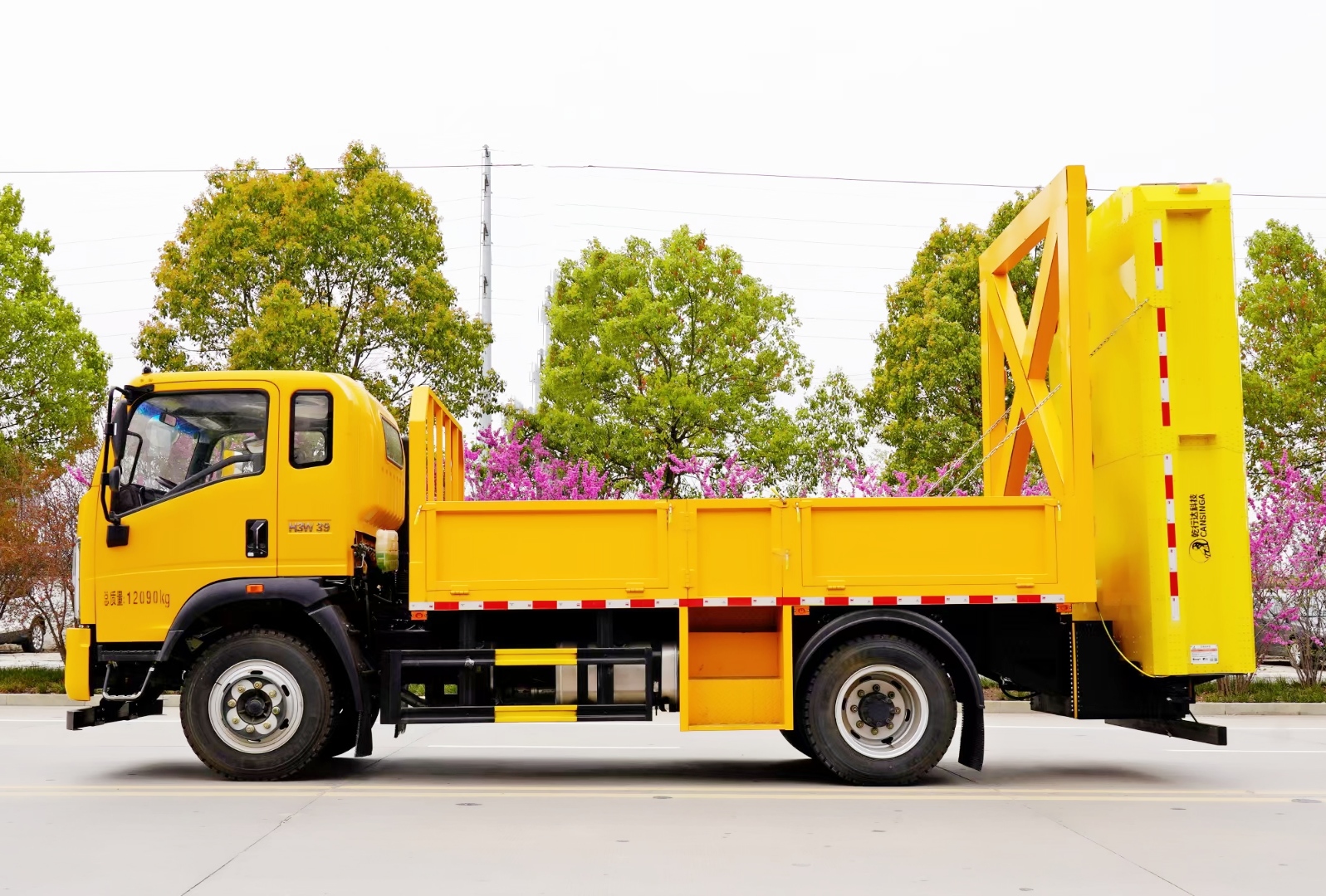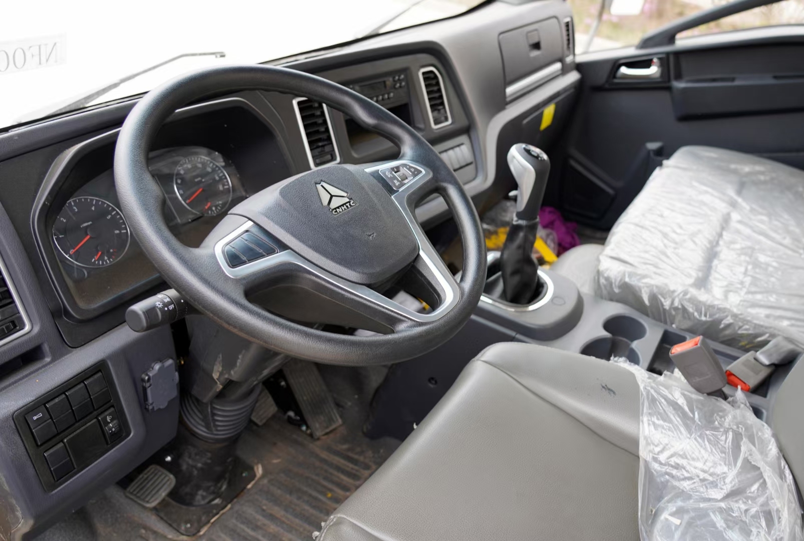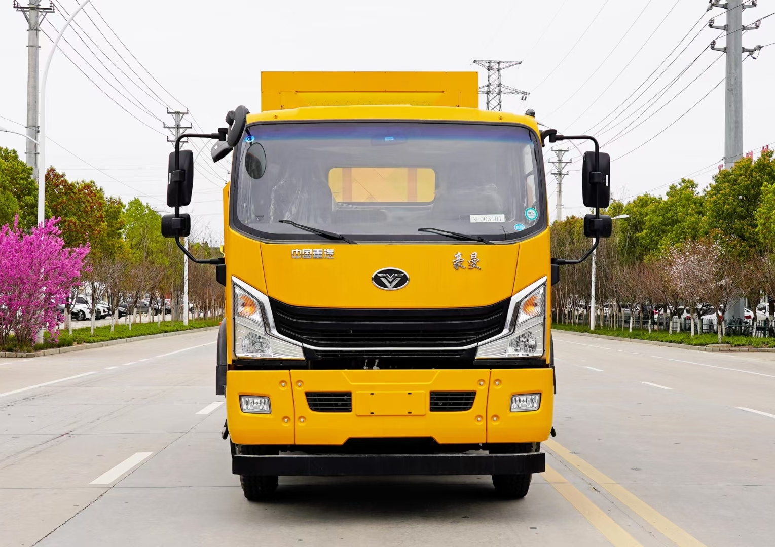 該車采用重汽商用車福建豪曼底盤,豪曼排半駕駛室,濰柴160馬力國六柴油發(fā)動機(jī),法士特8檔變速箱,軸距3900mm,9.00R20鋼絲胎,帶方向助力,空調(diào),ABS。