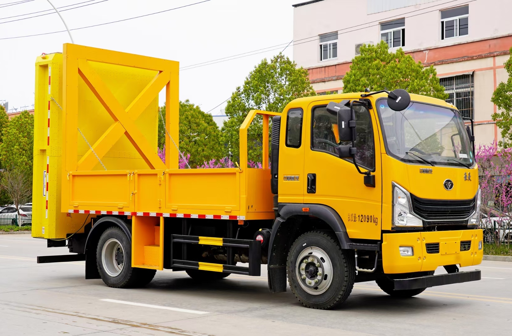 上裝貨箱采用Q235國標(biāo)優(yōu)質(zhì)碳鋼板,箱體后部防撞緩沖模塊包采用國際知名技術(shù)產(chǎn)品100K防撞緩沖模塊,防撞緩沖裝置主要由車載防撞緩沖墊和導(dǎo)向標(biāo)志架組成,充當(dāng)施工作業(yè)車輛后方的緩沖衛(wèi)士。 如若發(fā)生追尾事故,能夠在肇事車輛和前方施工作業(yè)區(qū)域之間構(gòu)建一個緩沖區(qū)域,通過機(jī)具結(jié)構(gòu)變形吸收撞擊的能量,最大限度地降低被保護(hù)人員及設(shè)備遭到碰撞的幾率。高性能液壓系統(tǒng),可實現(xiàn)快速舉升和落下操作。高清LED顯示屏可由手機(jī)APP控制,可隨時切換顯示內(nèi)容,一鍵操作方便快捷。