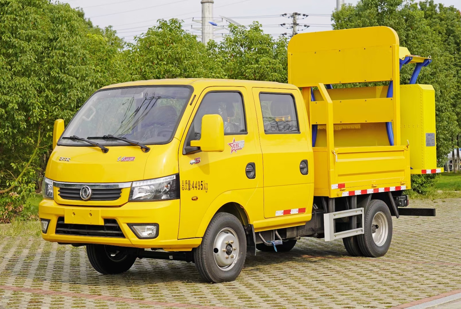 該車采用東風(fēng)股份原裝底盤,雙排新款駕駛室,3000mm軸距,搭載全柴Q23-95E60柴油發(fā)動(dòng)機(jī),95馬力柴油發(fā)動(dòng)機(jī),功率70kw,國(guó)六排放,5檔變速箱,185R15LT真空胎,動(dòng)力轉(zhuǎn)向,前盤制動(dòng),中控門鎖,電動(dòng)門窗,定速巡航,LED日間行車燈,原廠空調(diào),ABS。