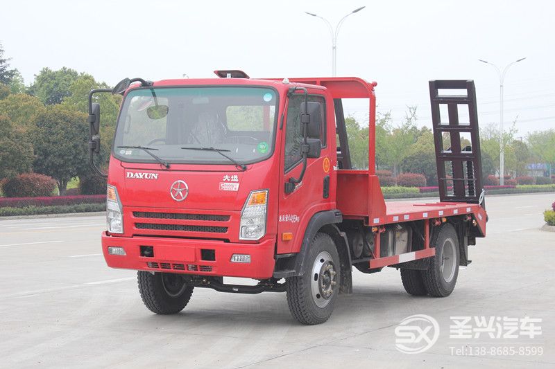 大運平板運輸車板長3.8米,斜坡長0.2米,5mm厚防滑花紋板,帶雙簧爬梯,簡易支腿,橫梁間距350mm,橫梁規(guī)格100x100x5(mm),可運輸10噸挖掘機,裝載機,收割機等機械。是運輸50、60、70、80、90小型挖掘機、小型工程機械等最理想的藍牌挖機拖車。