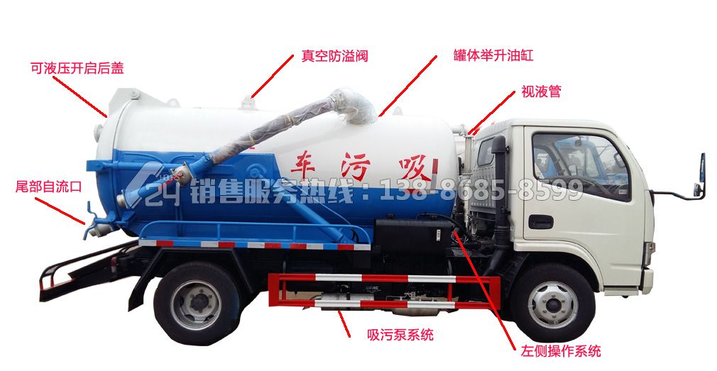 罐體及金屬附件進(jìn)行了涂前磷化處理,噴涂高分子防腐底漆和金屬面漆,附著力強(qiáng),耐腐性好,漆膜均勻,色彩光亮持久,外形美觀,能夠承受潮濕、多塵、鹽霧等不良環(huán)境,可防止發(fā)生開裂、起皮、銹蝕、褪色等問題.罐體封頭一次壓鑄成型、罐體可后開、雙頂自卸.罐內(nèi)污物可通過后蓋直接傾倒,具有真空度高(比吸糞車的吸力更大)、噸位大、效率高、用途更廣泛的特點.特別適合用于下水道內(nèi)淤積物、管道沉積物的抽吸、裝運和排卸,死角泥溝的疏通,清洗工業(yè)排液管道,壁面等,尤其是可吸下水道泥漿、淤泥、石子、磚塊等較大物體.并可兼作灑水,運水和沖公路用,緊急時可用于救火.