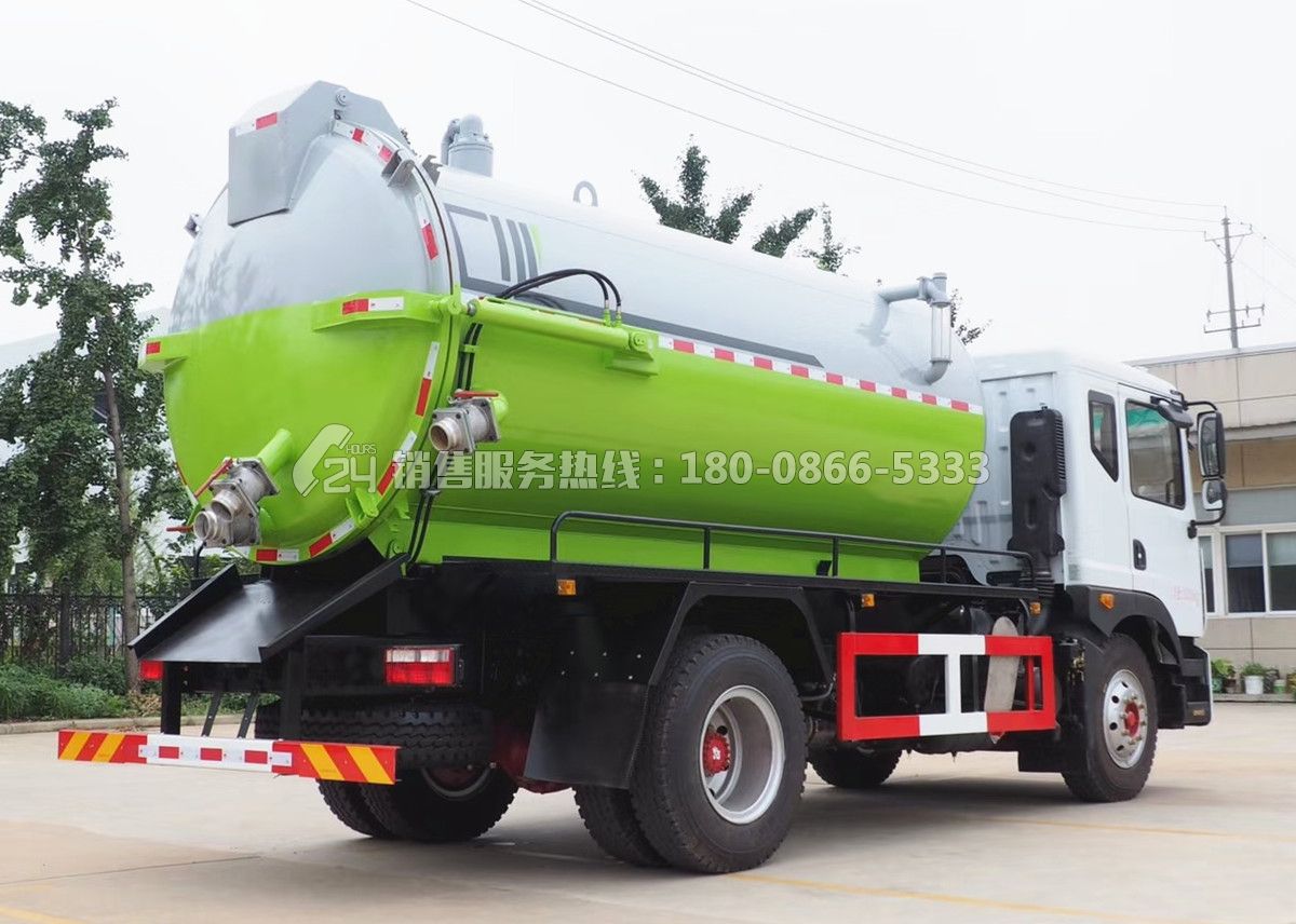 吸污車專用部分由壓力罐體(采用國標6mm厚碳鋼板、可選擇使用不銹鋼罐 、襯塑罐)、真空吸污泵、取力器、傳動軸、水氣分離器、油氣分離器、多路換向閥、放污閥、視污窗、真空壓力表、管網(wǎng)系統(tǒng)、液壓系統(tǒng)、洗手裝置等組成,隨車配置大功率真空吸污泵和優(yōu)質(zhì)液壓系統(tǒng),罐體封頭一次壓鑄成型、罐體可液壓后開、雙頂液壓自卸。罐內(nèi)污物可通過后蓋直接傾倒,具有真空度高(比吸糞車的吸力更大)、噸位大、效率高、用途更廣泛的特點。