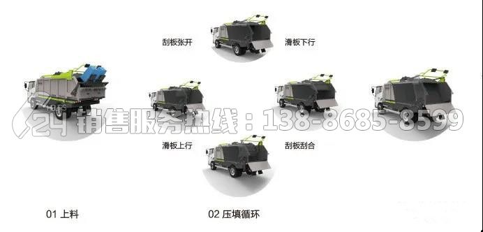 2)、動態(tài)壓填作業(yè)間隙恒定控制技術,始終保持壓填機構與垃圾箱敞口的間隙恒定,防止垃圾飄灑。
