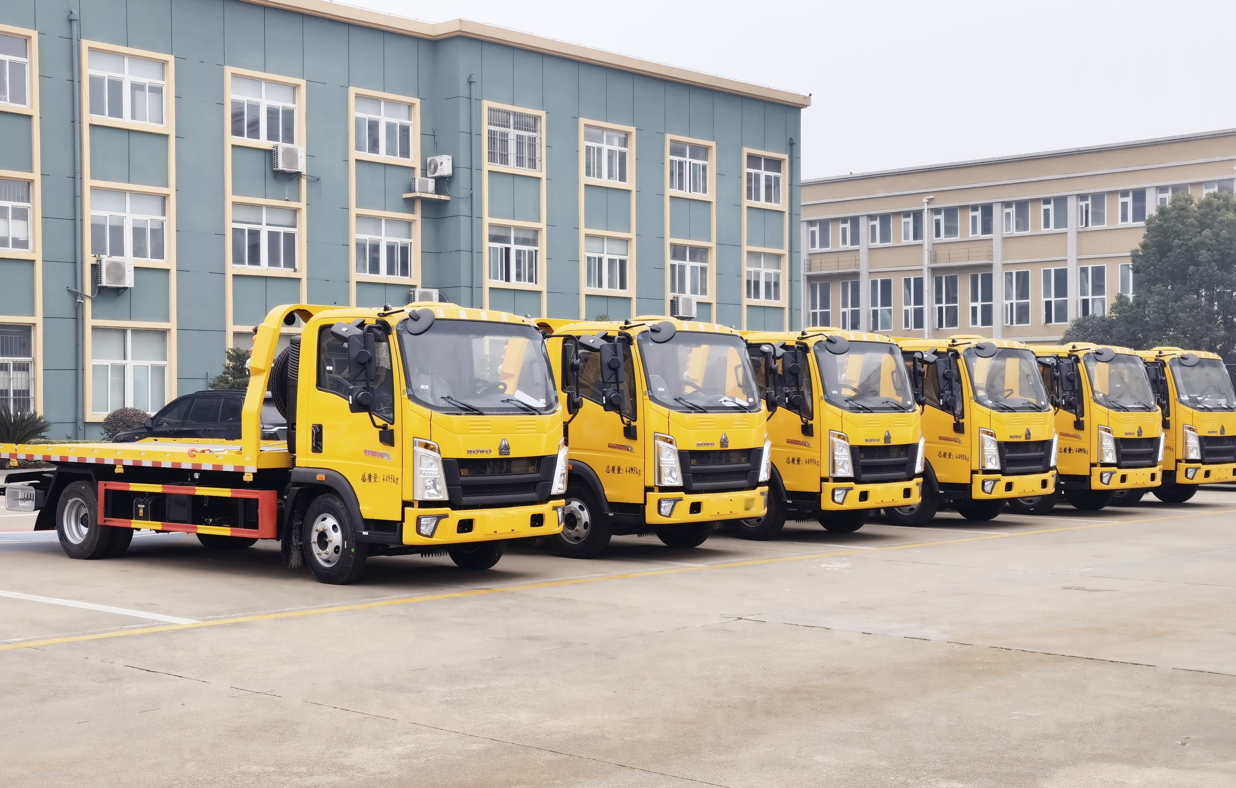 上裝配置:全新油漆處理工藝噴砂,烤漆、采用加強(qiáng)折疊沖壓式平板(防滑能力強(qiáng),外表美觀)或選裝花紋板面(承載力強(qiáng)),一拖二型,雙側(cè)聯(lián)動(dòng)操作裝置,采用國(guó)產(chǎn)多路閥(進(jìn)口多路閥可選),嘉善取力器,后工作燈2只,1個(gè)40KN液壓絞盤(21米鋼絲繩),1個(gè)工具箱,1個(gè)洗手箱,抱胎套筒一對(duì),L型抱胎架1對(duì),4根捆綁帶。